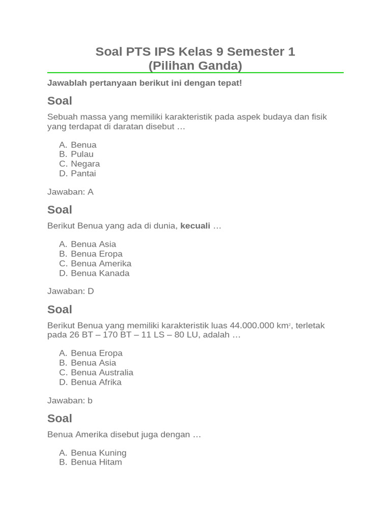 Penilaian Tengah Semester (PTS) merupakan salah satu momen penting dalam kalender akademik siswa. Khususnya bagi siswa kelas 9, PTS semester 1 menjadi evaluasi awal yang krusial untuk mengukur pemahaman terhadap materi pelajaran dan sebagai persiapan menghadapi Penilaian Akhir Semester (PAS) yang akan datang. Mata pelajaran Ilmu Pengetahuan Sosial (IPS) di kelas 9 memiliki cakupan materi yang luas dan menantang, mencakup geografi, sejarah, sosiologi, dan ekonomi, yang semuanya relevan dengan dinamika kehidupan global saat ini.